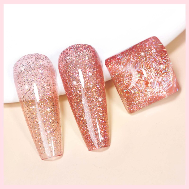 - High Coverage Shimmer Effect: The glitter is dense, but not too thick, Usually we recommend applying 2 coats to get opaque coverage; The shimmer glitter nail polish is great for finger and toe use, makes a great nail look