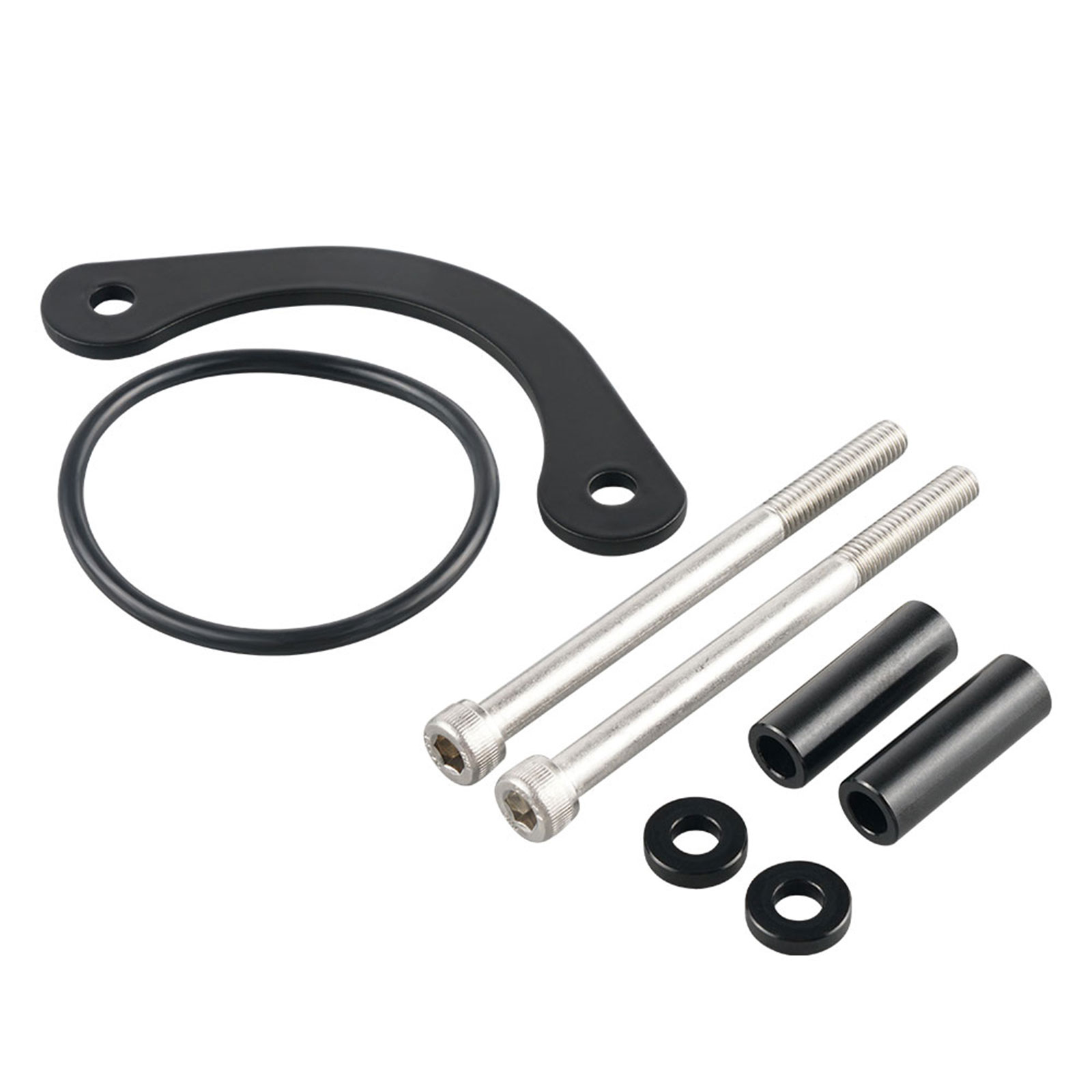 This bracket secures the upper intercooler to valve elbow to the intake manifold assembly. The clip system used at the upper intercooler to hose elbow wears down and the hose can no longer stay attached, especially under boost. This bracket uses the OE mounting bolts to attach a reinforcement bracket that secures the hose in place. Includes new O-Ring for your Inlet Tube.