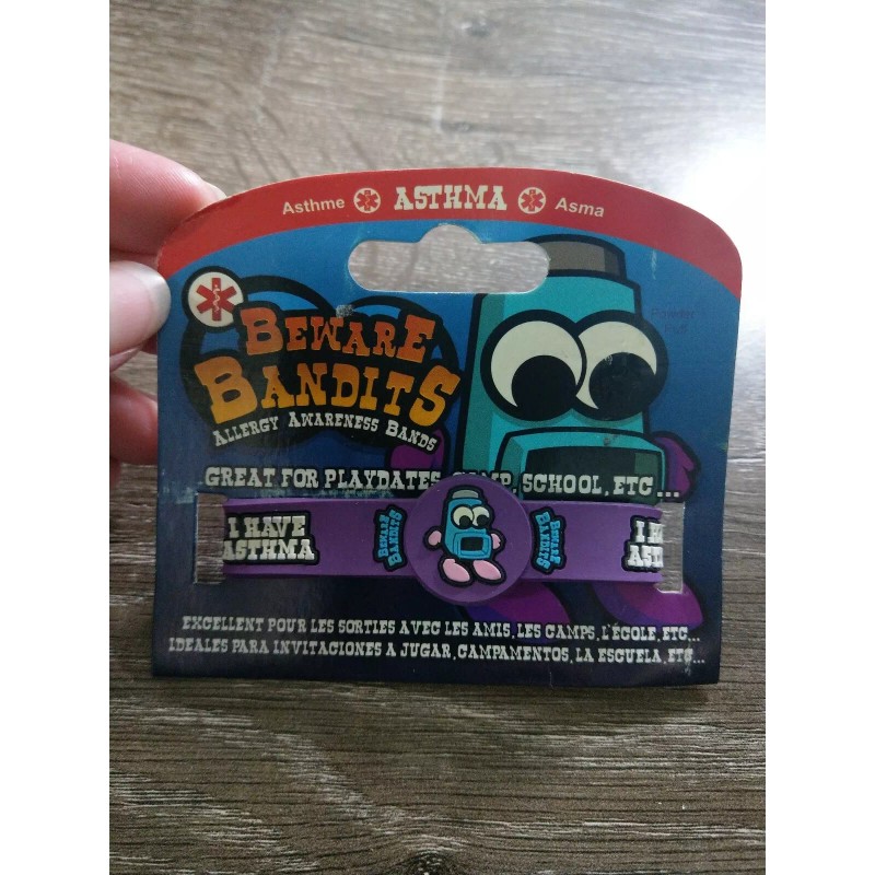 Beware Bandits ASTHMA Medical Alert Bracelet - Emergency Wrist Band NEW Purple
