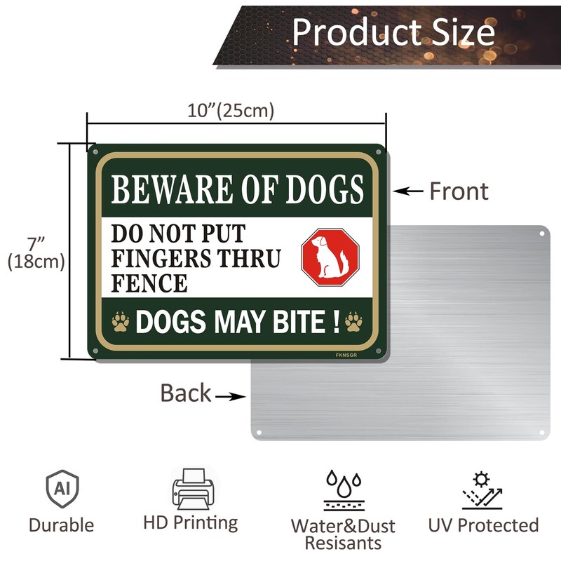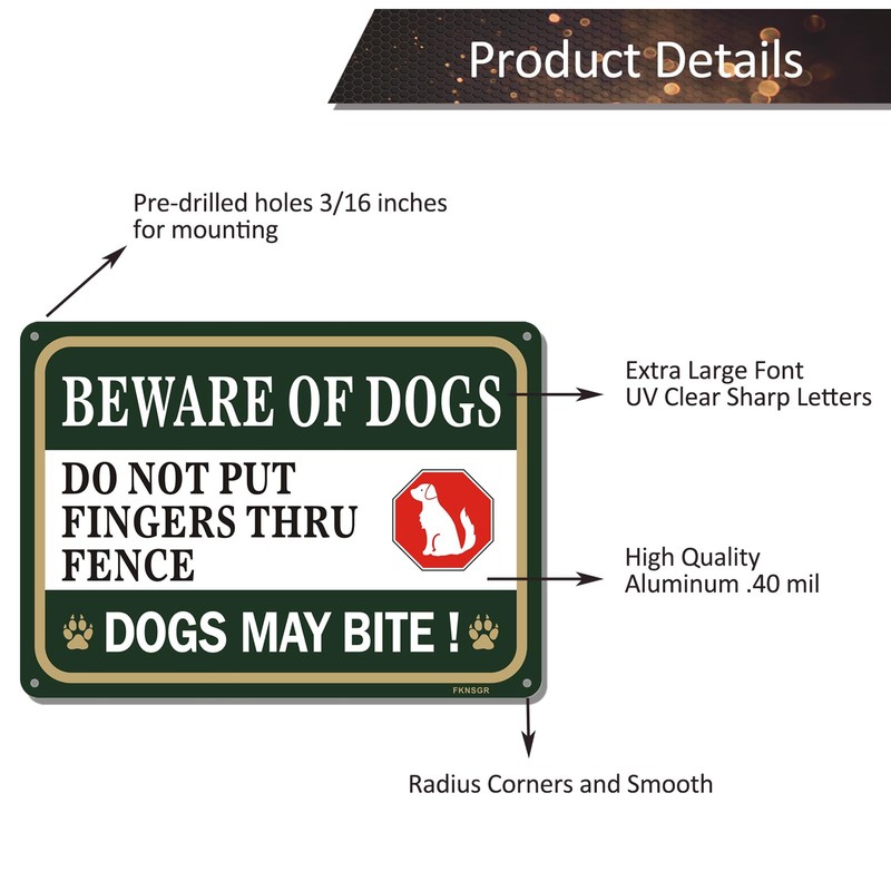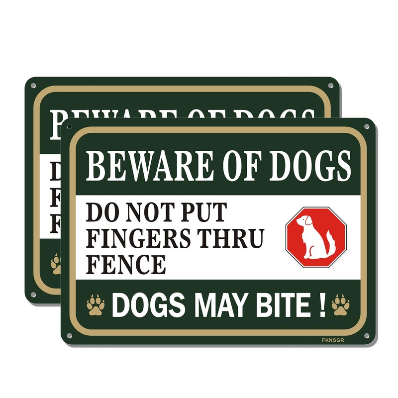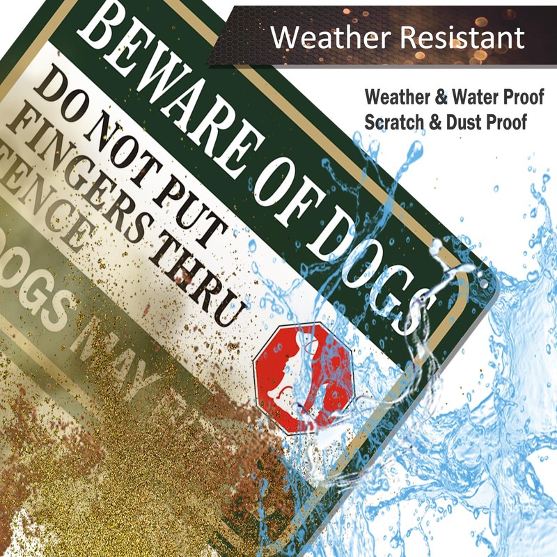 Beware of Dog Sign Do Not Put Finger Thru Fence. 10 x 7 inch Rust Free Aluminum Sign, Weather Resistant, Waterproof, Durable Ink, Easy to Install