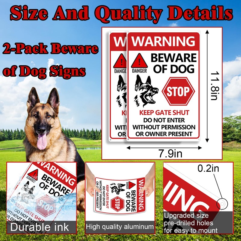 - WIDE APPLICATIONS FOR DIFFERENT SCENARIOS: These beware of the dog sign hold versatility; They can be conveniently placed in a variety of settings, be it field fences, yards, houses, roads, gardens or lawns; The sign serves as an efficient way to alert people to the presence of dogs