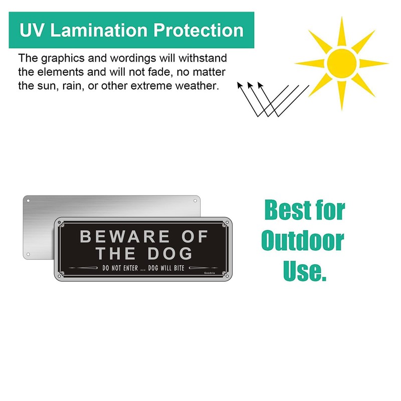 - Applicable: This stylish, modern sign is ideal to screw onto a gate or wall, to alert people of your dog/dogs. Attach to your front door, on a gate, on a wall in your yard, entryway, or driveway.