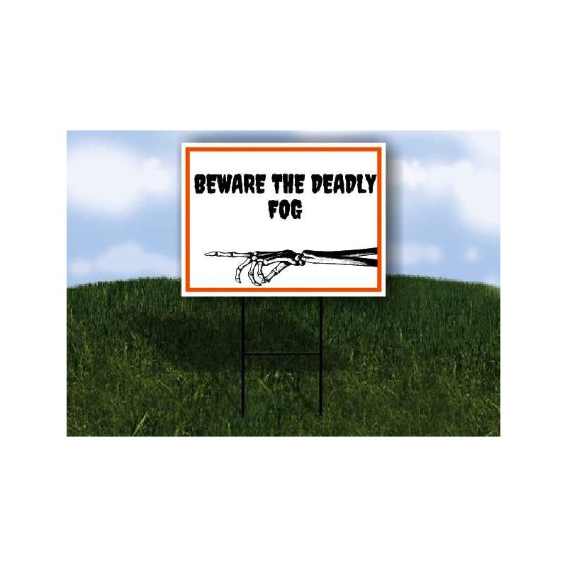 BEWARE THE DEADLY FOG Halloween Skeleton Left Arrow Single Sided 18x24 in Yard Road Sign w/Stand