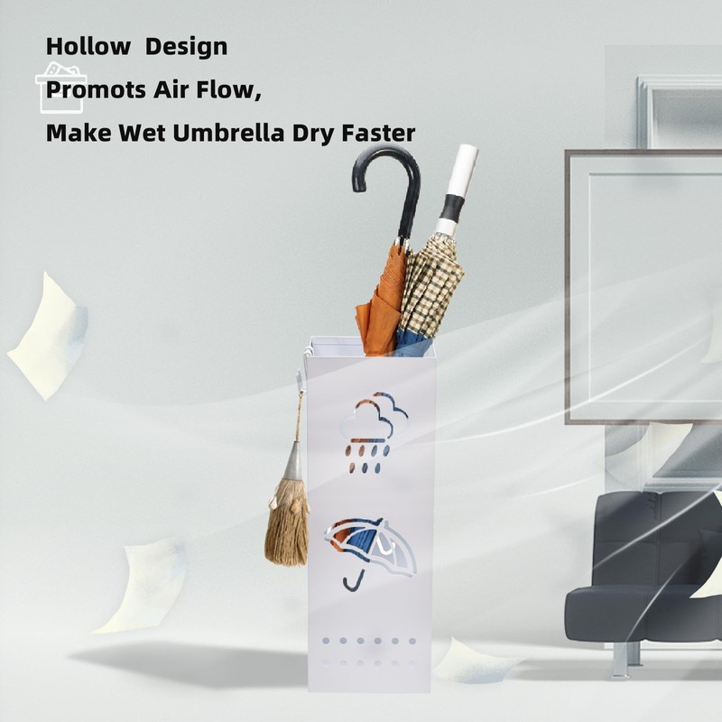 - Our umbrella holder bin adopts elegant hollow-out rain and umbrella design, can not only maintain good ventilation, let your umbrella dry faster, but also add a touch of elegant and modern to your home decor.