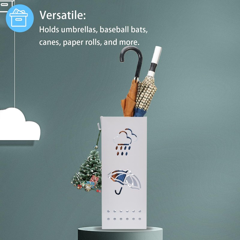 - Removable Hooks : Our umbrella stand comes with 2 removable hooks for holding short umbrellas. Organizer your long umbrellas and short umbrellas with one umbrella organizer bin.