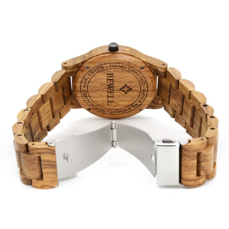 BEWELL ZS-W086B Men Wooden Watch Waterproof Quartz Movement Date Display Analog Wristwatches