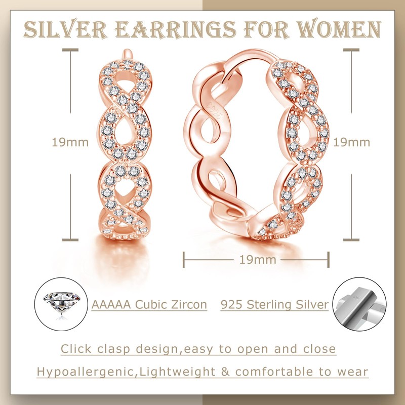 - Minimal design: these 925 silver hoop earrings are classic, simple and elegant, suitable for men and women. The infinitely twisted design gives the silver hoop earrings a vibrant look. The silver hoop earrings are studded with sparkling zirconia that subtly capture the light and glitter in the ear. Silver hoop earrings can be worn alone as well as combined with other earrings. Wear these hoop earrings to highlight your fashionable style