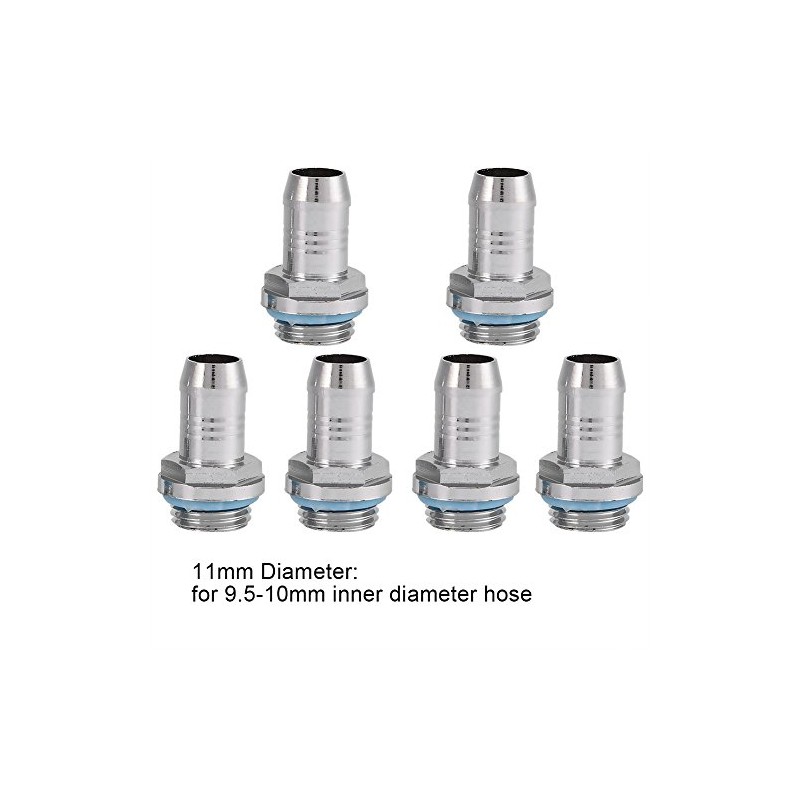 Bewinner 6 PCS Barb Fittings,Stainless Steel PC Water Cooling Two-Touch Fitting,G1/4 Thread Barb Connector for Tube (11mm)