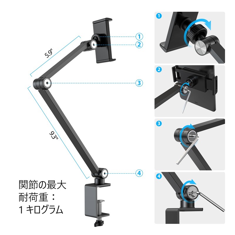 - 【COMPATIBILITY】Compatible with 4.7-15.6 inch cell phone and tablet devices,E-reader / tablet/iPad (iphone iPad Pro 12.9, iPad Air, iPad mini, iPad mini 6, Samsung Galaxy Tabs, Surface Pro, Kindle Fire HD, Drawing Tablet, etc) Note: Clamp adjustment range is 11.9-22.6cm