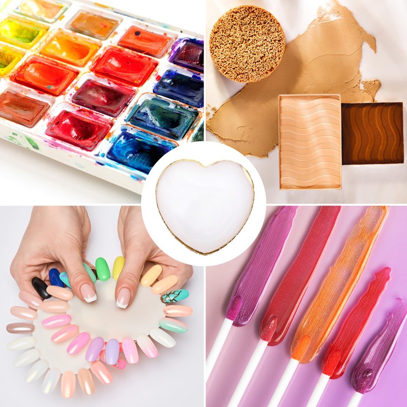 - 【Design Style】This nail art palette adopts a heart-shaped design, which is small and cute, and the edge is designed with gold edging. It is exquisite and practical, and you can mix the colors and pigments you want at will.
