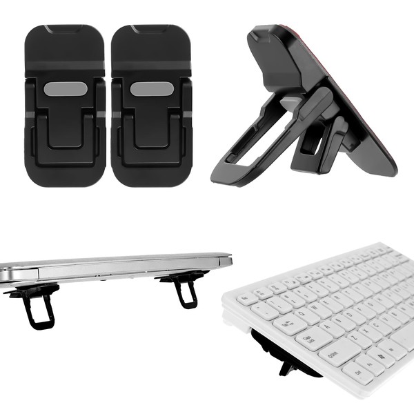 Bewudy 2 Pcs Portable Keyboard Riser, Dual Tilt Angle Adjustment Foldable Laptop Riser, Mini Computer Keyboard Stand for Desk, Self-Adhesive Keyboard Riser Feet for Most Keyboards(Black)
