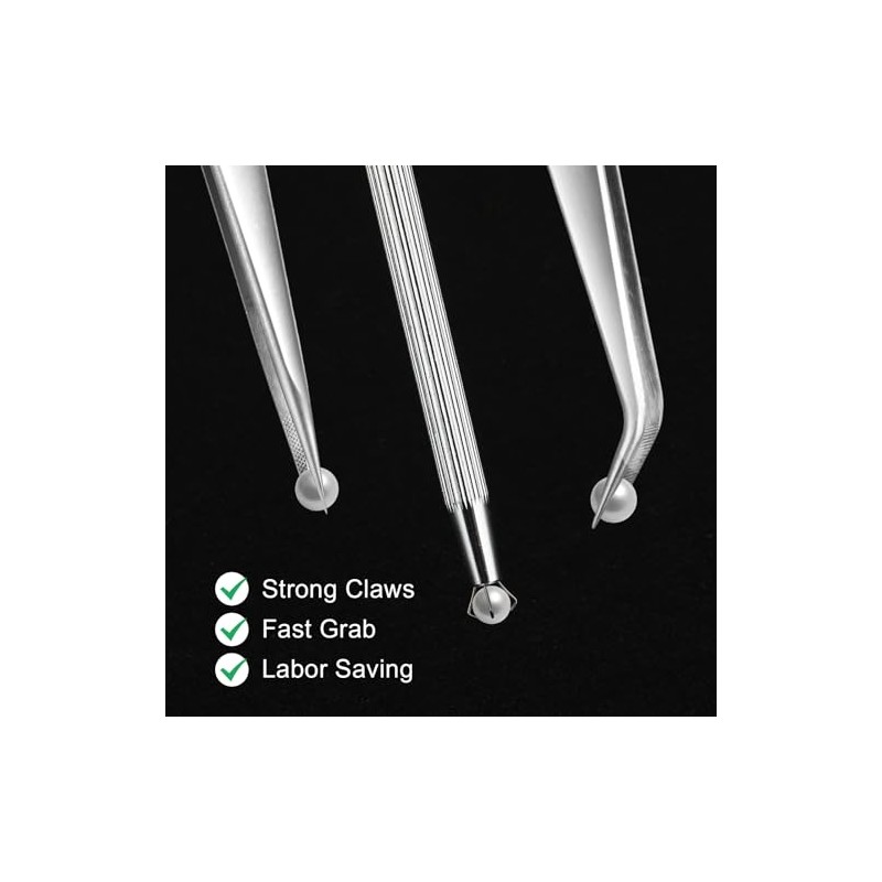 Bewudy Bewudy 3Pcs Piercing Ball Grabber Tool Set, Diamond Tweezers Jewelers Holder Pick up Tool, Precision Stainless Steel Jewelry Locking Tweezers For Tiny Objects IC Chip Electronic Components