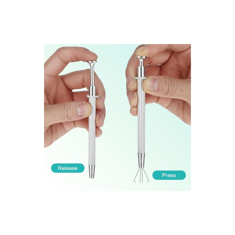 - Premium MaterialJewelry claw grabber pick-up tools are made of durable stainless steel, the surface is finely sandblasted and matte, matte and non-reflective, anti-static, and anti-magnetic. The metal body can prevent falling and collisions and is not easy to damage.