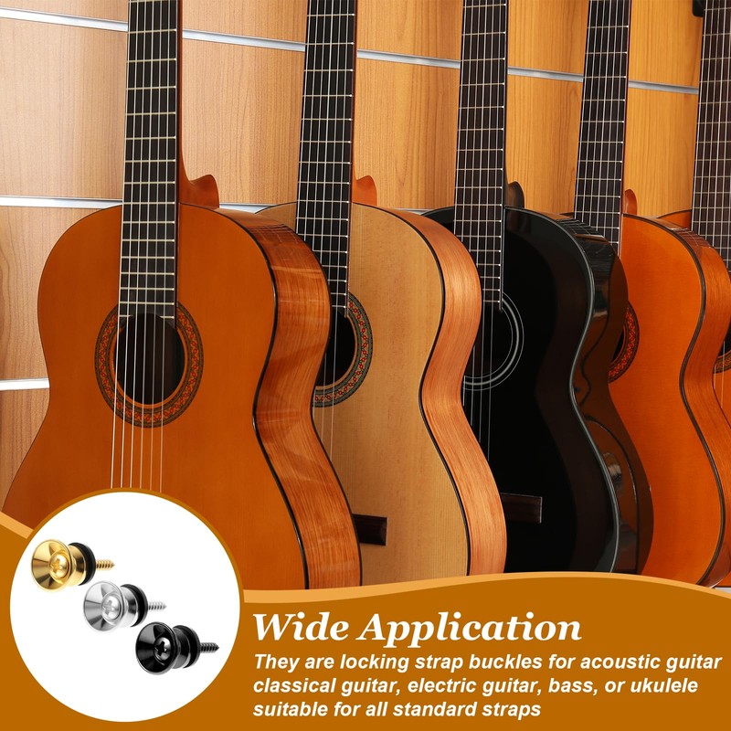 • Various colours: you will receive 6 metal guitar strap buttons with screws in black, silver and gold, 2 pieces per colour. The variety of colours allows you to adjust your strap buttons to the asthetics of your instrument, making it a versatile for any guitar lover.