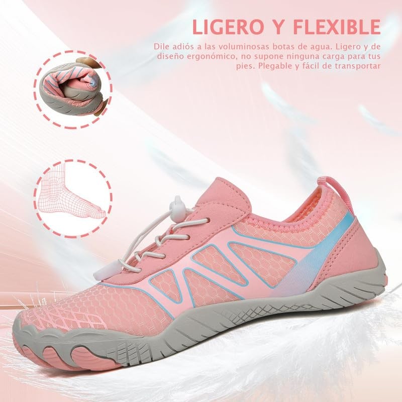 - 【Drenaje y Secado Rápido】La parte superior de los zapatos de agua para mujer está hecha de tela ultraligera y transpirable, lo que hace que tus pies estén más cómodos. La suela con orificios de drenaje puede drenar rápidamente el agua del zapato, creando un ambiente fresco y saludable para tus pies.
