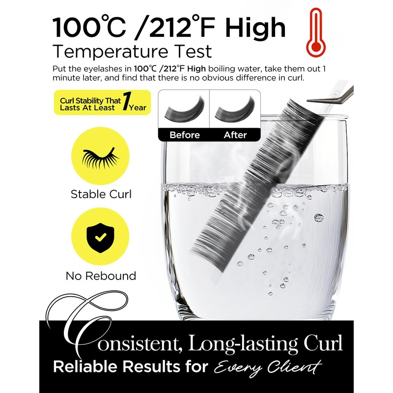 - Long-Lasting Curl Stability - Designed with NeverFlat technology, BEYELIAN lash extensions maintain their curvature through high temperatures and daily use. Tested under 80°C conditions, the curl remains consistent for up to 3 years, making them ideal for saunas, hot showers, and active lifestyles