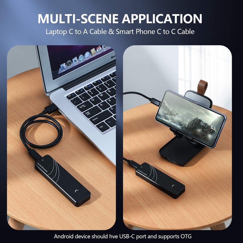 - 【Transmisión de alta velocidad】 La velocidad teórica del SSD que usa el protocolo NVMe es de 10 Gbps, mientras que la velocidad teórica del SSD que usa el protocolo NGFF (SATA) es de 6 Gbps. Admite UASP, el chip de control principal RTL9210B con estable y rápido velocidad de transferencia de datos, se pueden instalar hasta 2 TB SSD.