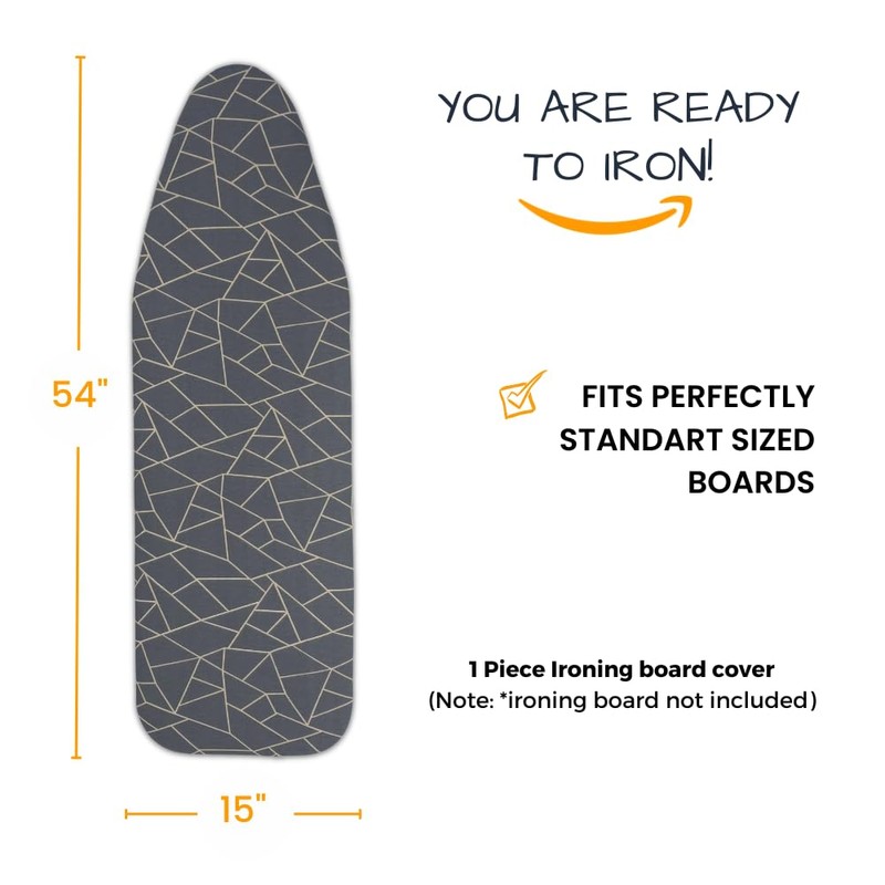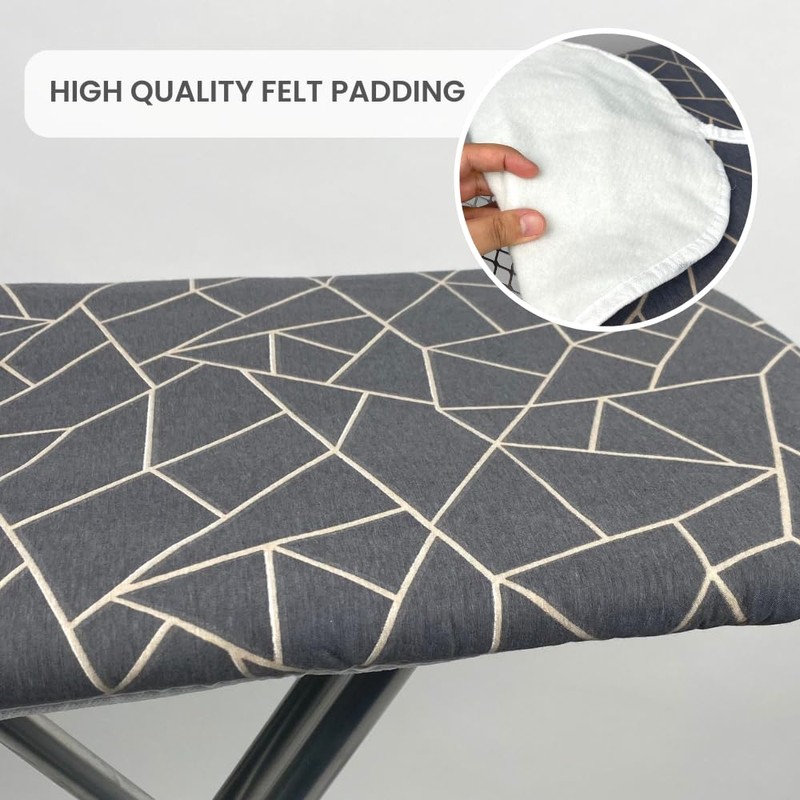 Beylini Ütü Masası Kılıfı Bezi Örtüsü Kalın Keçe Dolgulu Bağcıklı Sıkıştırma Yanmaya Dayanıklı Kolay Uyum Ağır Yansıtıcı Görev Ayarlanabilir 3 Katman Standart Boyut 50 x 150 cm (Geometrik Gri)