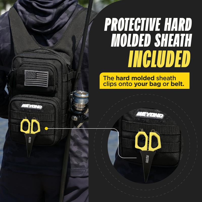 - SECURE STORAGE: Includes a hard molded lock sheath to keep the fishing scissors protected and securely in place, preventing accidental falls while on the move. Attach it to your shorts, belt, or tackle bag for convenient access.