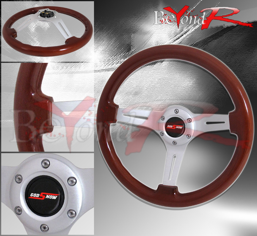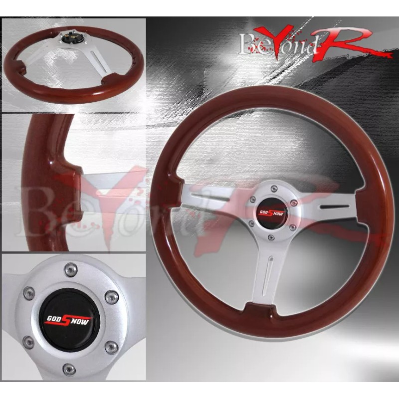 Beyond Revolution 350mm Light Wood Grain 3 Spokes Steering Wheel Jdm Vip Godsnow Button Horn Badge