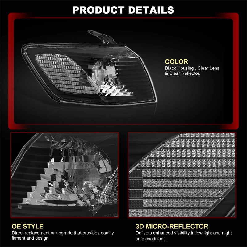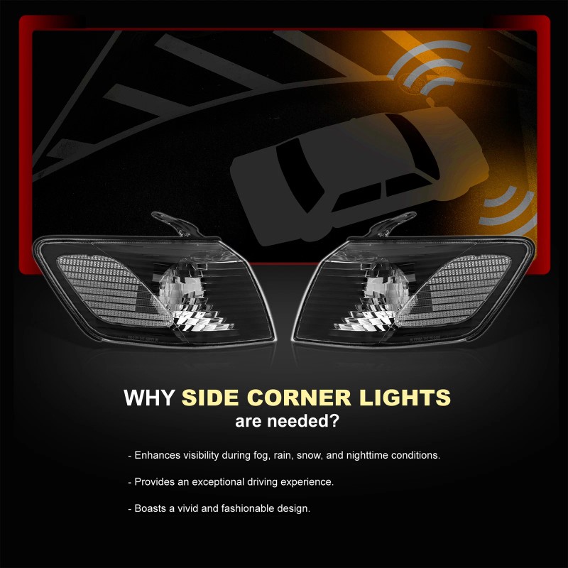 Beyond Revolution For 2000-2001 Toyota Camry Black Side Corner Lamps Clear Turn Signal Park Lights