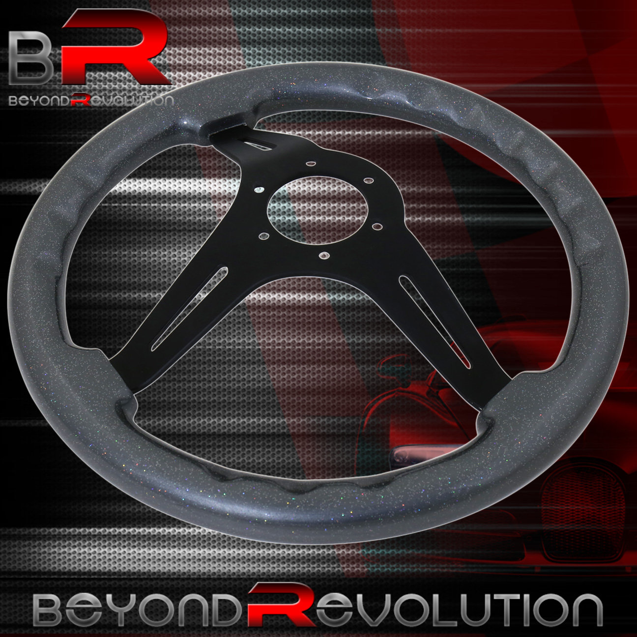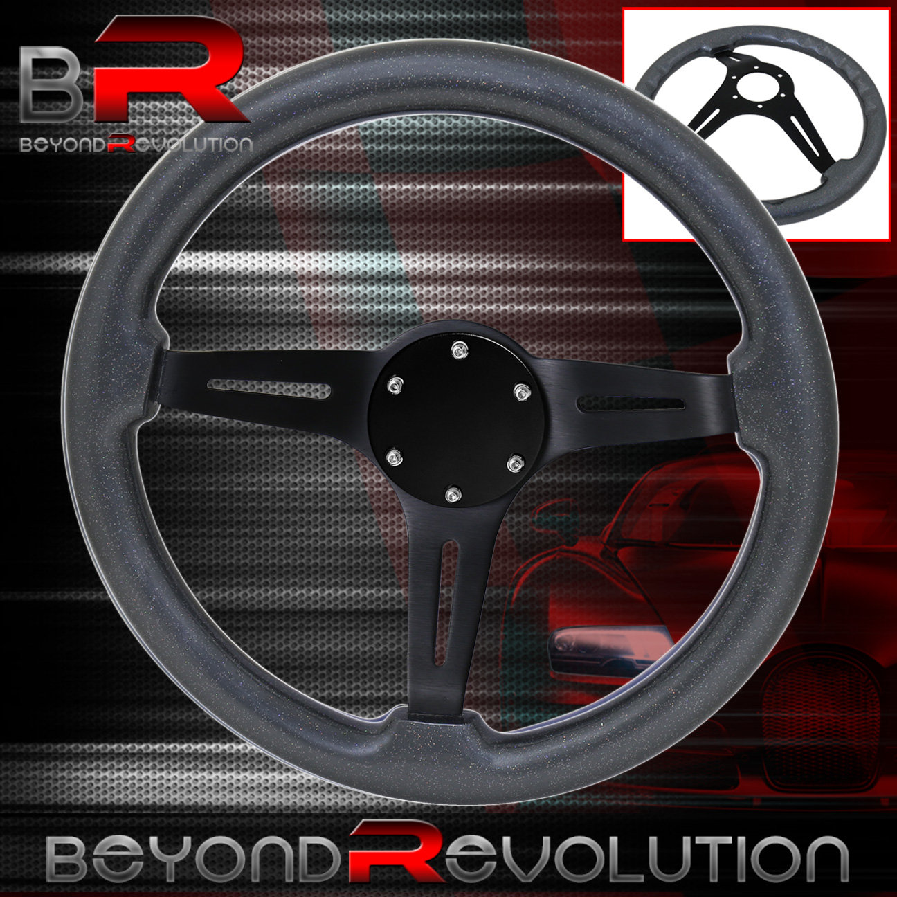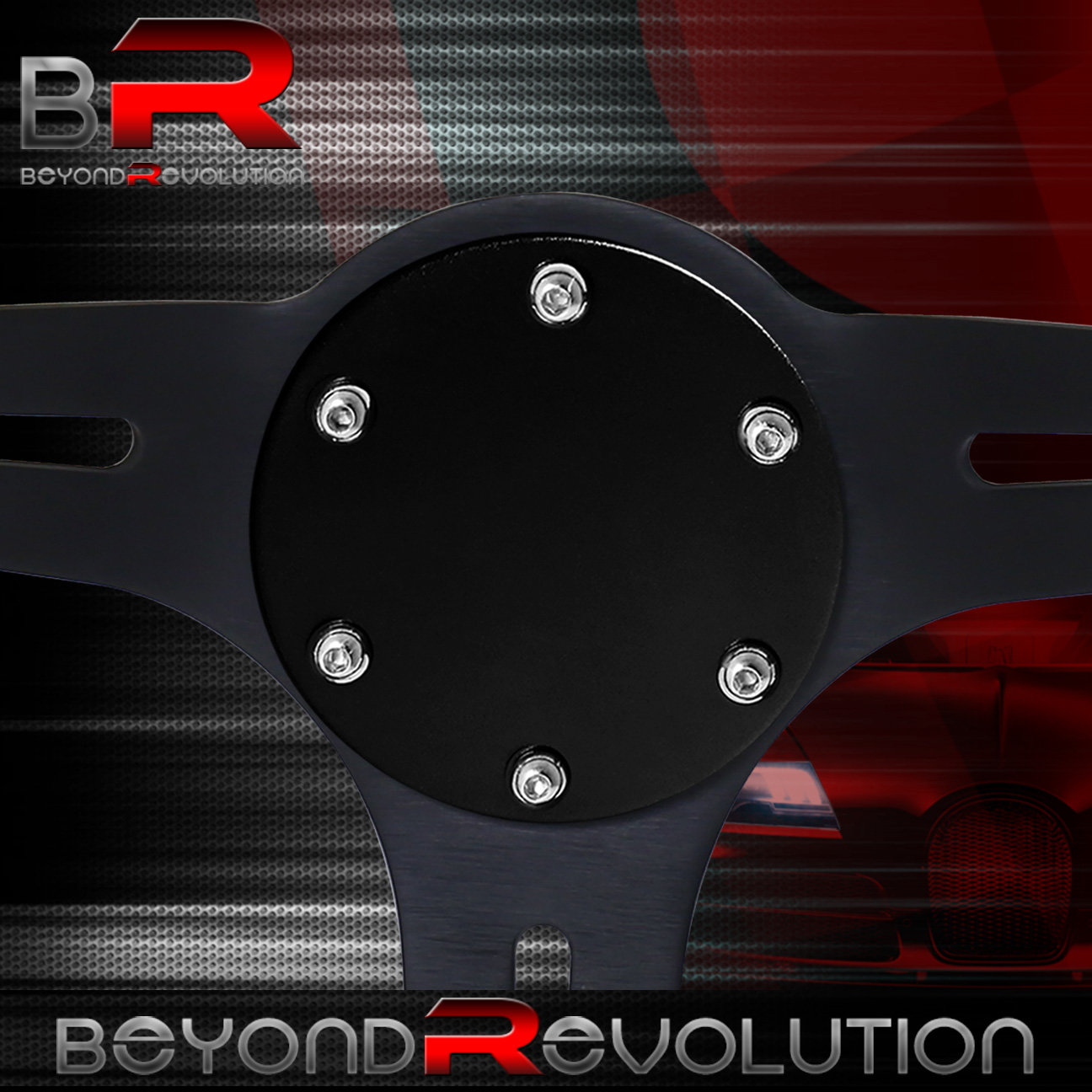 Beyond Revolution Horn Button Delete + 345mm Gunmetal Wood Black Center Deep Dish Steering Wheel