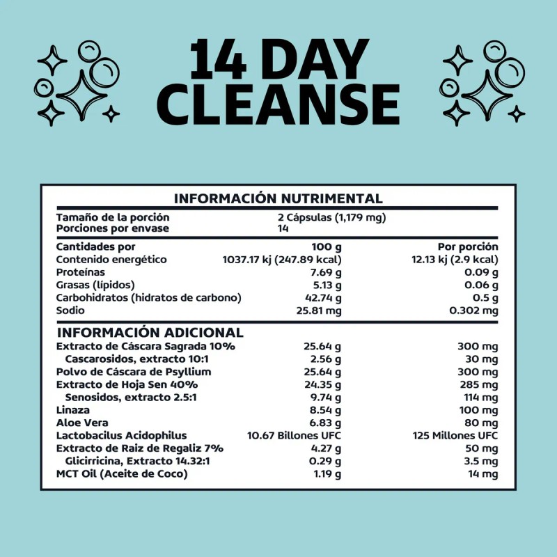 Beyond Vitamins 14 Day Cleanse Cascara Sagrada, Psyllium Husk, Hoja Sen Probiticos Candida Cleanse - Limpieza 15 dias - Vegano Detox 15 Day Colon