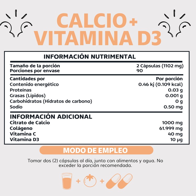 - ✨ ALTA POTENCIA: Cada porción contiene 1000 mg de Citrato de Calcio