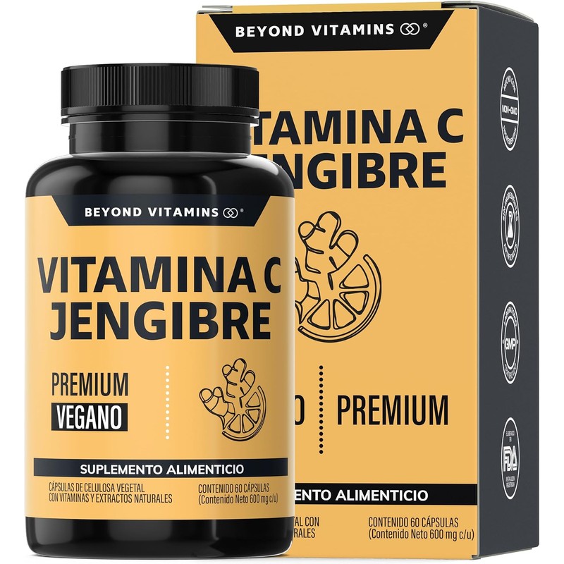 Beyond Vitamins | Vitamina C potenciada con antioxidantes y anti-inflamatorios, Jengibre, Equinácea, Ajo, Orégano, Zinc y Vitamina D3, Cápsulas veganas (60 Cápsulas)
