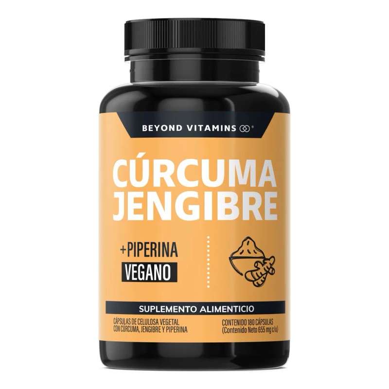 - Presentamos Beyond Vitamins Cúrcuma + Jengibre, la combinación perfecta de ingredientes premium diseñada para elevar tu rutina diaria a nuevos niveles de vitalidad. Cada porción contiene 1000mg de raíz de cúrcuma y 300mg de jengibre, dos de los tesoros más valiosos de la naturaleza, potenciados con extracto de pimienta negra (piperina) para una absorción superior. Cúrcuma y Jengibre: Una Sinergia Perfecta La cúrcuma y el jengibre son conocidos desde hace siglos por sus propiedades excepcionales y su capacidad para complementarse entre sí. La cúrcuma, con su característico color dorado, ha sido venerada por sus múltiples beneficios y su papel en diversas culturas. El jengibre, con su sabor picante y refrescante, añade una dimensión adicional de bienestar. Juntos, forman una pareja imbatible que te ayuda a enfrentar el día con energía y vitalidad. Absorción Mejorada con Piperina La inclusión de extracto de pimienta negra (piperina) en nuestra fórmula no es casualidad. La piperina aumenta la biodisponibilidad de la cúrcuma y el jengibre en un impresionante 2000%, asegurando que tu cuerpo absorba y utilice al máximo cada ingrediente. Esto significa que obtienes más de lo que realmente importa, en cada cápsula. LOS SUPLEMENTOS BEYOND VITAMINS SON: