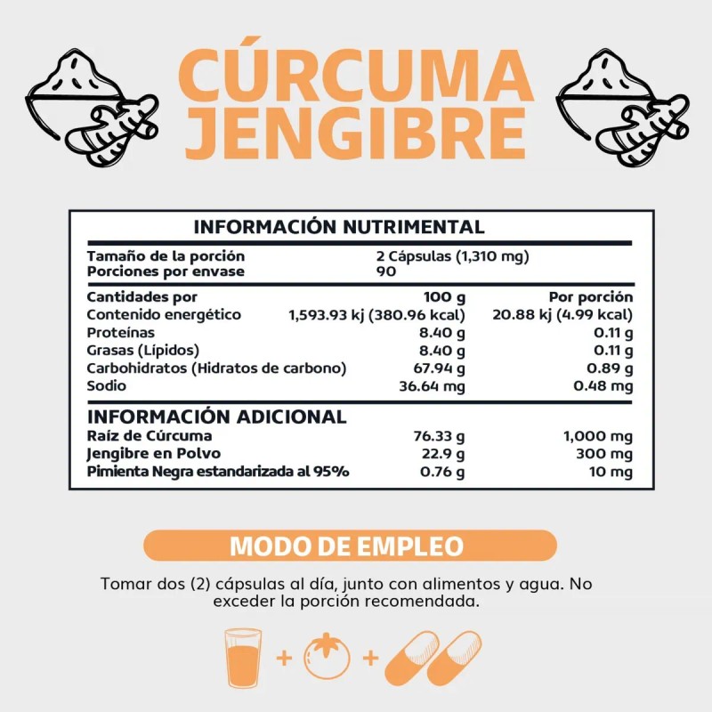 - Presentamos Beyond Vitamins Cúrcuma + Jengibre, la combinación perfecta de ingredientes premium diseñada para elevar tu rutina diaria a nuevos niveles de vitalidad. Cada porción contiene 1000mg de raíz de cúrcuma y 300mg de jengibre, dos de los tesoros más valiosos de la naturaleza, potenciados con extracto de pimienta negra (piperina) para una absorción superior. Cúrcuma y Jengibre: Una Sinergia Perfecta La cúrcuma y el jengibre son conocidos desde hace siglos por sus propiedades excepcionales y su capacidad para complementarse entre sí. La cúrcuma, con su característico color dorado, ha sido venerada por sus múltiples beneficios y su papel en diversas culturas. El jengibre, con su sabor picante y refrescante, añade una dimensión adicional de bienestar. Juntos, forman una pareja imbatible que te ayuda a enfrentar el día con energía y vitalidad. Absorción Mejorada con Piperina La inclusión de extracto de pimienta negra (piperina) en nuestra fórmula no es casualidad. La piperina aumenta la biodisponibilidad de la cúrcuma y el jengibre en un impresionante 2000%, asegurando que tu cuerpo absorba y utilice al máximo cada ingrediente. Esto significa que obtienes más de lo que realmente importa, en cada cápsula. LOS SUPLEMENTOS BEYOND VITAMINS SON: