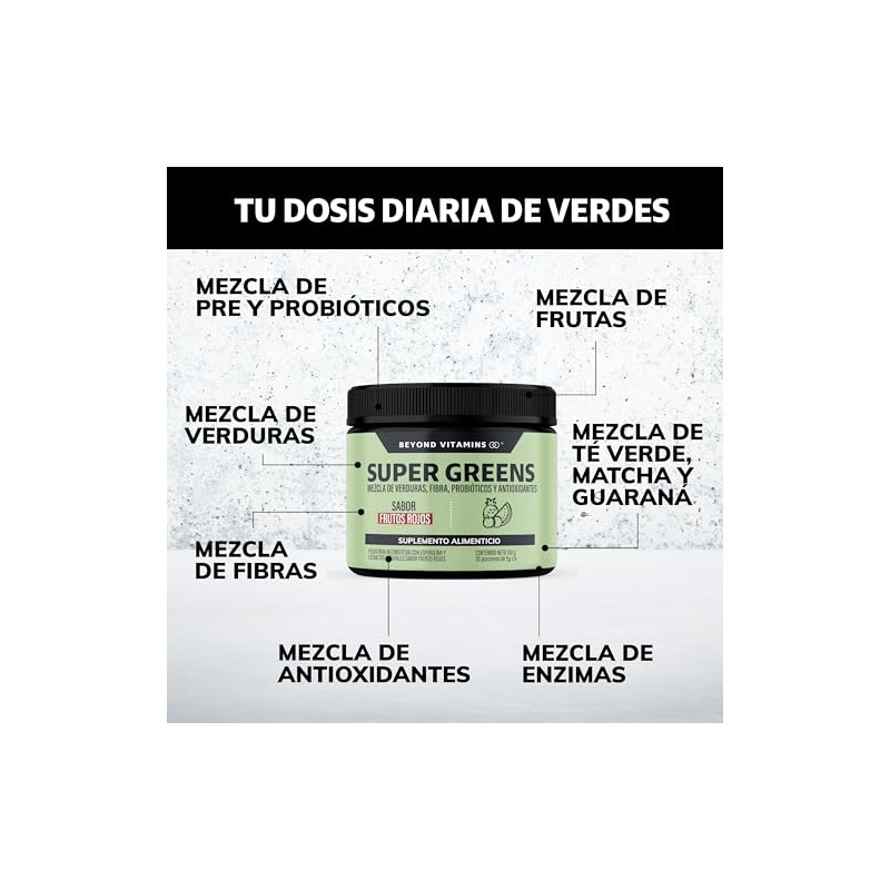 BEYOND VITAMINS - Beyond Vitamins | Super Greens, Jugo Verde en Polvo con Té Matcha, Espirulina, Té Verde, Espinaca, Clorofila, Moringa, Melena de León, Enzimas Digestivas, Probióticos y muchos más | Super Blend Sabor Frutos Rojos | 30 porciones. 🚀 Producto más vendido con miles de clientes satisfechos. Diseño ergonómico y funcionalidad excepcional. 🔥 Alta demanda - Stock limitado. Ideal para quienes buscan lo mejor en calidad y estilo. Producto auténtico con satisfacción total asegurada. ¡No te quedes sin el tuyo y aprovecha esta oportunidad única!