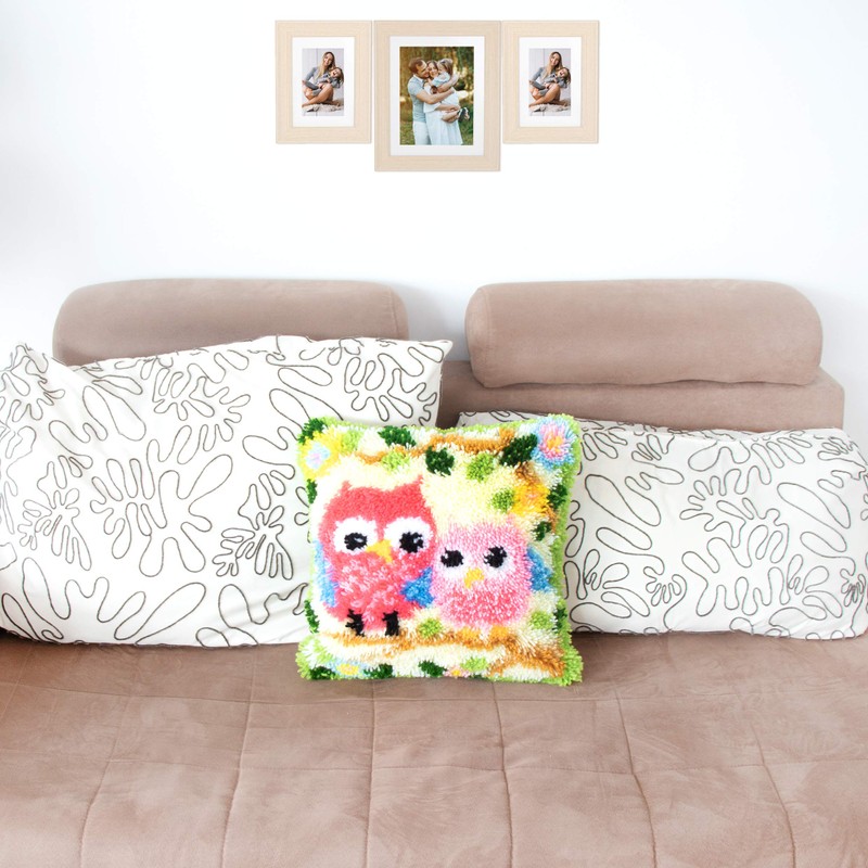 Beyond Your Thoughts DIY Latch Hook Kits Cute Yellow Owl Panda Pillow Cover Pattern Printed Crochet Needlework Crafts for Kids Adults and Beginners Family Decoration 16.5 * 16.5 in BZ644