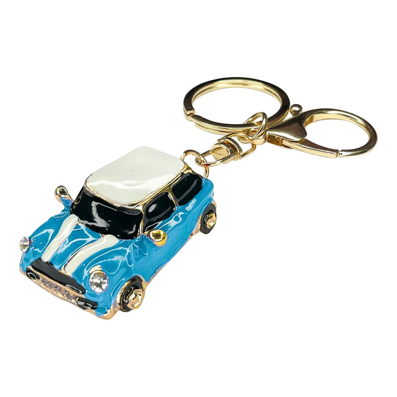 beypovk for Mini Cooper Keychain, Creative 3D Car Model Rhinestone Key Fob Cover Keyring, Universal Cute Key Chain with Ring, Lake Blue, Lake Blue