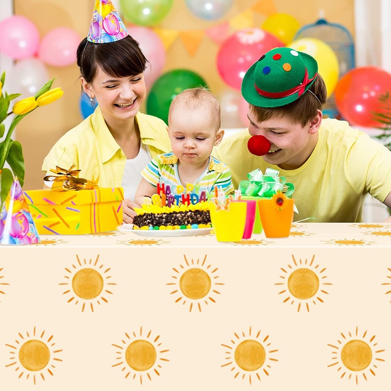 - 1.[Boho Sunshine Design] Add a splash of sunshine to your next party with our boho sun tablecloths! These colourful and attractive patterns will create a warm and inviting atmosphere, perfect for occasions like a Sunshine Party or First Trip Around the Sun Party.