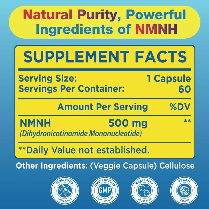 - Energy & Vitality Support*: NAD+ is the fuel source that powers the 30 trillion cells constituting your body. Our NMNH NAD+ Supplement helps enhance energy levels and combat fatigue by supporting conversion of nutrients into energy. One capsules daily may help you experience the benefits of enhanced immune, cognitive function, and a youthful vitality