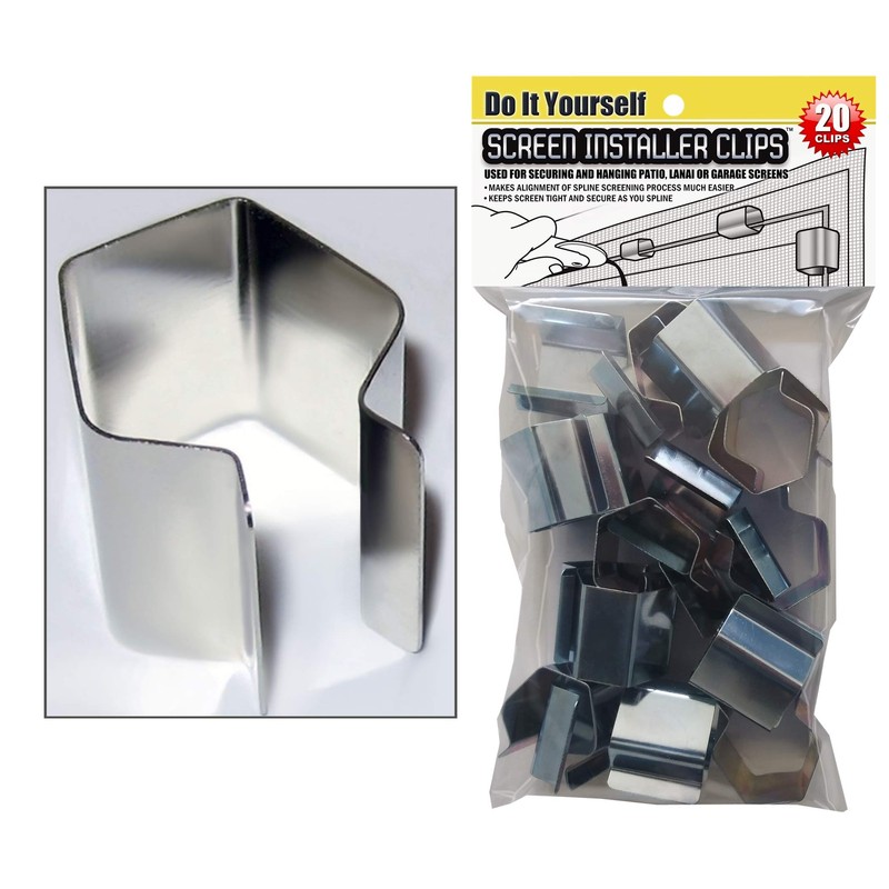 - The "Original" Screen Installer Clips: This package contains 20 Screen Installer Clips that will assist you with installing and fixing Window/Door Screens. This makes the process much easier and makes this a 1 person job. The Screen Installer Clips will save you time and effort when installing patio, lanai, porch , window, door, and garage screens. Recommended to use with Plastic Screen Rollers to avoid rips.
