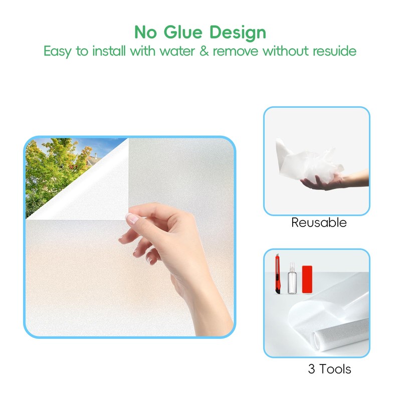 - EASY INSTALLATION AND REUSABLE: Our window film features an easy peel backing for simple and easy installation. This makes it ideal for quick and easy remodeling of your home or office. Our window film has a non-adhesive design that utilizes static electricity for adhesion, ensuring clean, residue-free removal and can be reused as needed.