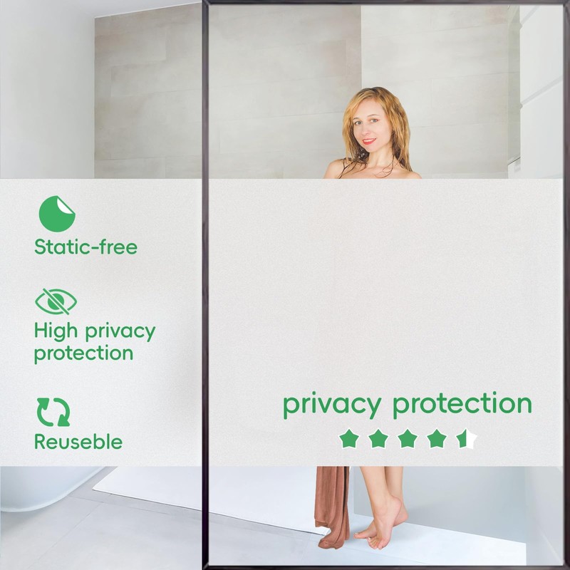 BEZAVSGNL Window Privacy Film Frosted Privacy Window Film Heat Control UV Blocking Frosted Glass Window Film Static Cling Non-Adhesive Reusable Door Coverings for Bathroom&Home&Office(23.6 * 78.7'')