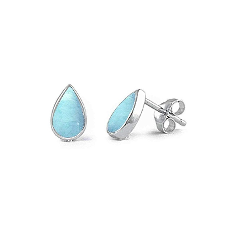 Bezel Set Teardrop Natural Larimar Stud Earrings Sterling Silver. Our silver jewelry is made from Sterling Silver. Sterling Silver is a mixture of high-quality 92.5% or higher pure silver with alloys to add strength and ability to withstand time and wear. All our items have a 925 Stamp referring to the Silver Purity that was used when crafted. Please Note: The 925 Stamp location may vary, depends on the item.