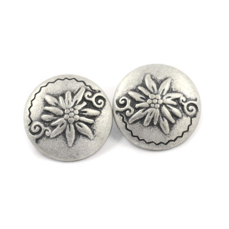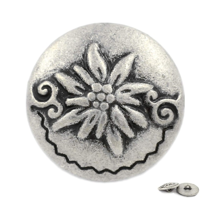 Bezelry 12 Pieces Edelweiss Antique Silver Metal Ring Shank Buttons 20mm (3/4 inch)