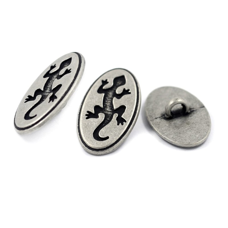 Design: Bezelry Gecko Lizard Pattern Oval Metal Shank Buttons.