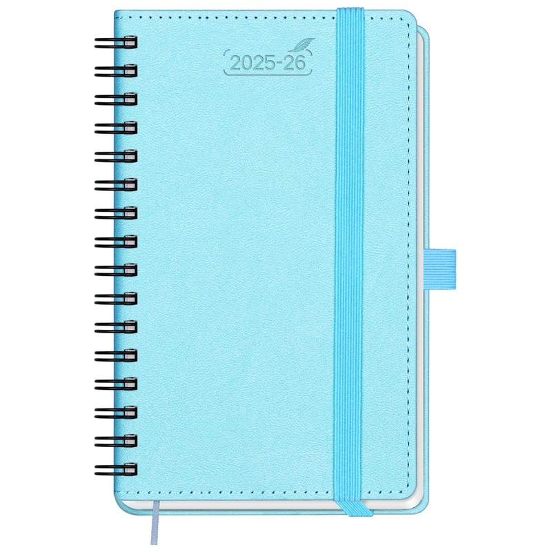 BEZEND Calendar 2025 2026 Small Weekly Planner A6, 18-Month Pocket Calendar July 25-Dec 26, Book Calendar Ring Binder PU Leather Soft Cover with Pen Holder - Sky Blue