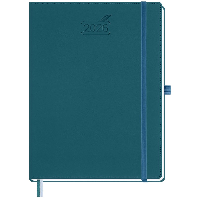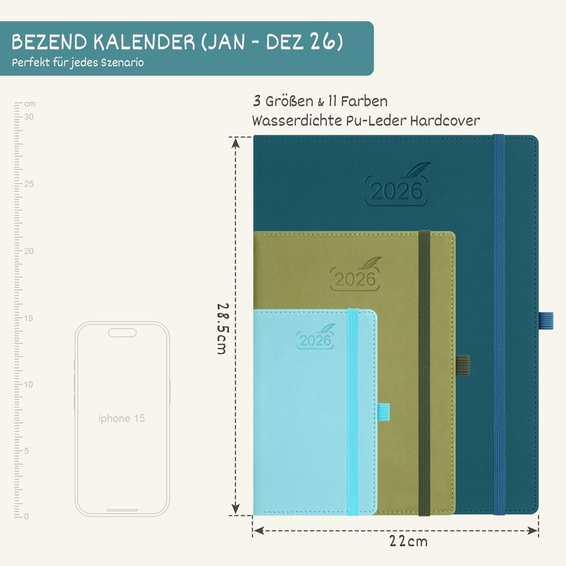 BEZEND Calendar 2026 Book Calendar Approx. A4 28.5 x 21.5 cm Diary 2026 Weekly Calendar 1 Week 2 Pages with Monthly Register Planner & Appointment Calendar A4 with PU Leather Hardcover - Dark Green