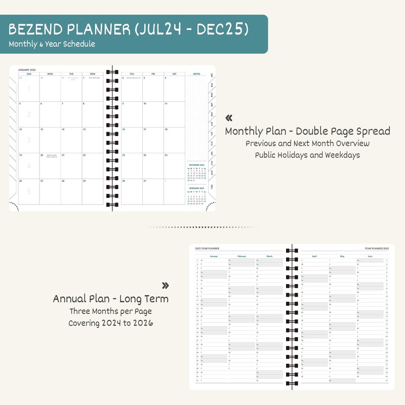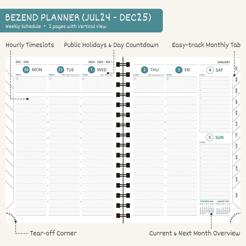 BEZEND Planner 2024 2025, 18 Months (July24-Dec25) [Dark Green] 5.8" x 8.5", Academic Year Planner, Daily Weekly and Monthly Calendar, Spiral Bound, Vegan Leather Soft Cover