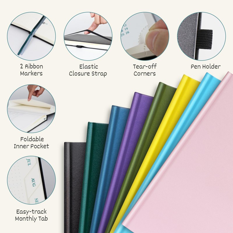 - ✅ UNIQUE DESIGN - 2 Ribbon Markers | Elastic Closure Strap | Inner Pocket | Easy-track Perforated Corners | Pen Holder | Public Holidays | Dotted Note Pages
