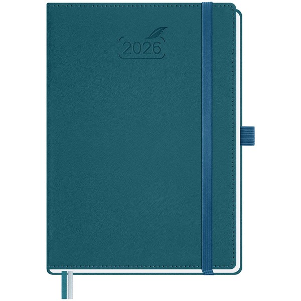 BEZEND Planner 2026 Weekly and Monthly, 6" x 8.5" Medium Calendar (Jan-Dec 26) Daily Agenda Organizer with Timeslot, Notes & Monthly Tab, Bookmark, Vegan Leather Hardcover - Dark Green