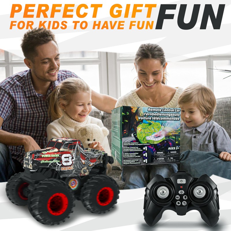 - The Ideal Gift for Kids: Searching for the perfect gift to ignite your child's imagination and spark their love for adventure? Look no further than our remote control monster truck. This remarkable rc truck combines all the thrilling features that young monster truck enthusiasts crave, making it an excellent choice for dinosaur toys for kids 3-5 and the ultimate present for boys aged 4-7. It's a gift that will keep them entertained for hours, fostering their creativity and sense of wonder.