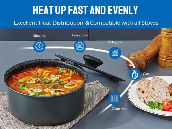 - Compatible with All Stovetops - Made from recyclable aluminum, these pots and pans have an expanded and reinforced bottom for rapid heat distribution. Magnetic base ensures compatibility with all stovetops, including induction. Remove the handle for oven use, up to 450°F. More choices for your cooking and baking needs.