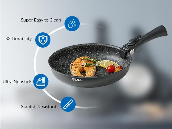 - Healthy Non-Stick Coating - Our cookware is made from non-toxic, PFOA-free materials that are safe for you and your family. No harmful chemicals like PTFE or PFAS.